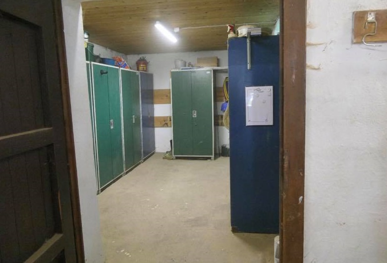 Am Ende des Stalltrakts befindet sich eine Sattelkammer mit Sattelschränken.